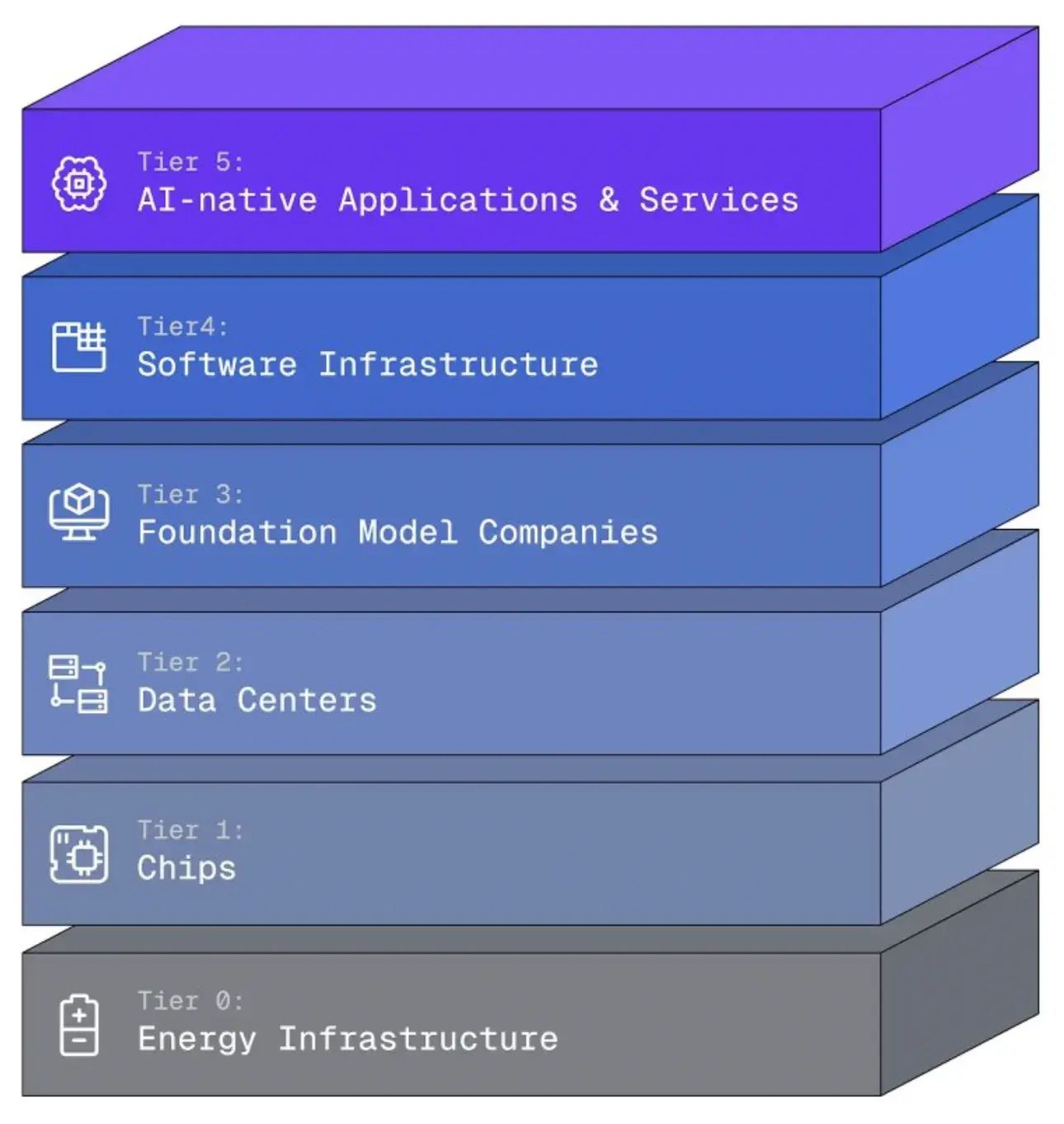 Dit is de laag die ervoor zorgt dat bedrijven AI veilig, stabiel en op grote schaal kunnen gebruiken. Denk aan platforms die AI-modellen beheren, opvolgen, beveiligen en integreren in bestaande systemen. Je ziet er weinig van, maar zonder deze “tussenlaag” kan geen enkel AI-systeem betrouwbaar draaien.